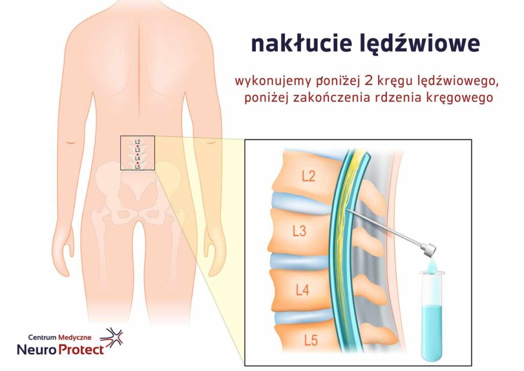 Nakłucie lędźwiowe: W warunkach aseptycznych, w znieczuleniu miejscowym lekarz wykonuje nakłucie lędźwiowe, aby uzyskać dostęp do przestrzeni podpajęczynówkowej, gdzie znajduje się płyn mózgowo-rdzeniowy.