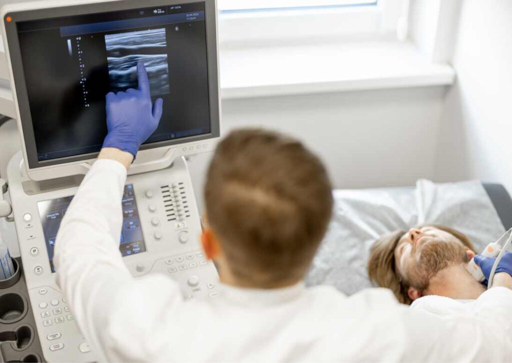Ultrasonografia pozwala na ocenę struktury ściany naczyniowej, możemy ocenić wielkość, położenie i echogeniczność, a także rodzaj ewentualnej blaszki miażdżycowej. Dzięki tej technice możliwe jest także rozpoznanie stopnia zwężenia naczynia oraz określenie miejsca występowania blaszek miażdżycowych.